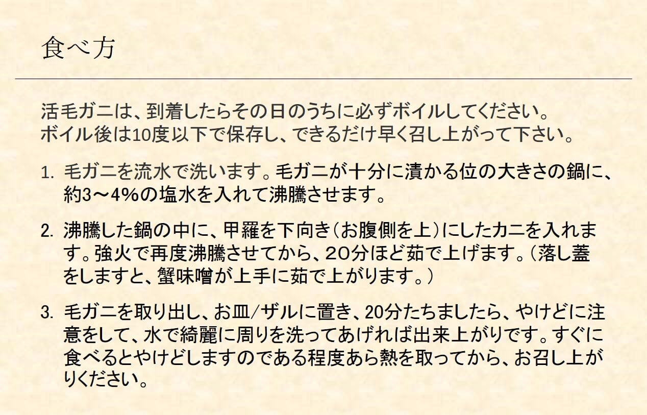 活きた状態のものを出荷します。ぜひこの機会で希少な巨大毛ガニをお試し下さい。