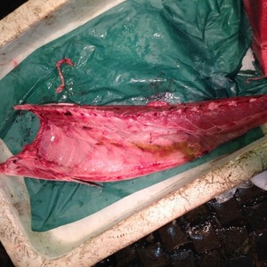天然ブリには「ブリ糸状虫」という寄生虫がいます。もともと暖かくなってきたころによく見られましたが、ここ最近では温暖化の影響か冬でもよく見られます。もともと氷見のブリも虫が少ないとよく言われていましたが、ここ最近はよくこの寄生虫が散見されます。人間に寄生することはないので、食べてしまっても人体に問題はありません。少し見た目にインパクトがありますので、驚かれる方も多いと思いますが、取り除けば問題なくお召し上がりになれますので、取り除くよう対応頂ければと思います。当店でも見える部分に関しては取り除くようにしますが、あまり身をいじると鮮度にも影響しますので、対応にも限度があること予めご了承頂ければと思います。天然もの故、ご理解頂いた上でご購入をご検討下さい。