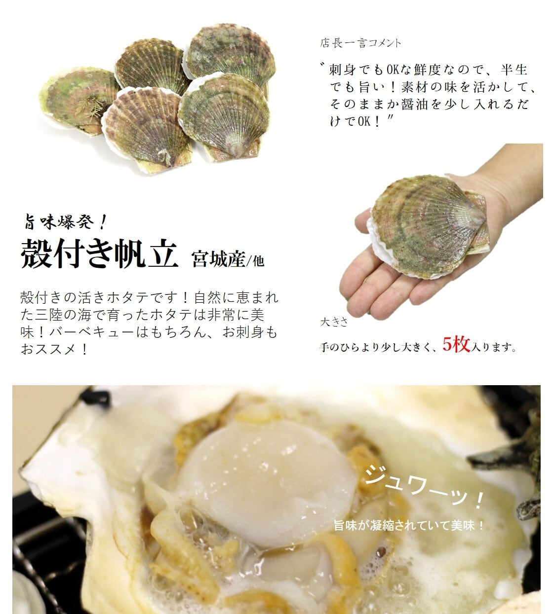 ホタテ5枚(宮城産 他)
