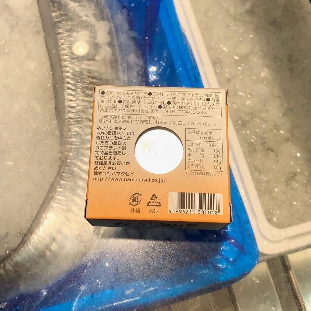 原材料:紅ズワイガニ内臓(国産)、ズワイガニ内臓(カナダ産)、(一部にかにを含む)