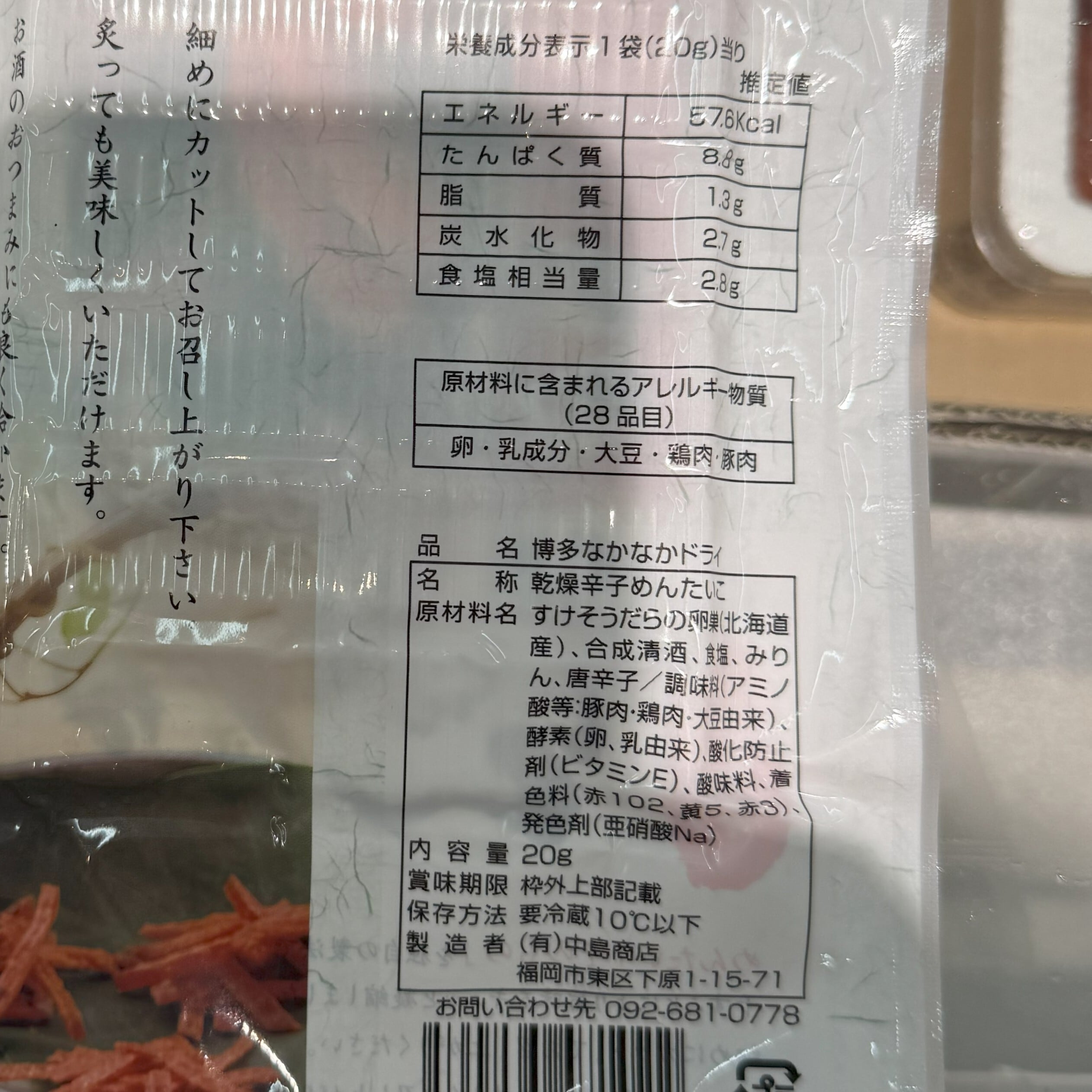 国産の明太子が少ない中、貴重な北海道産のスケソウダラを使用して作られており、原料へのこだわりも感じます。軽く炙って細かく切ってお召し上がりになることをおススメします。